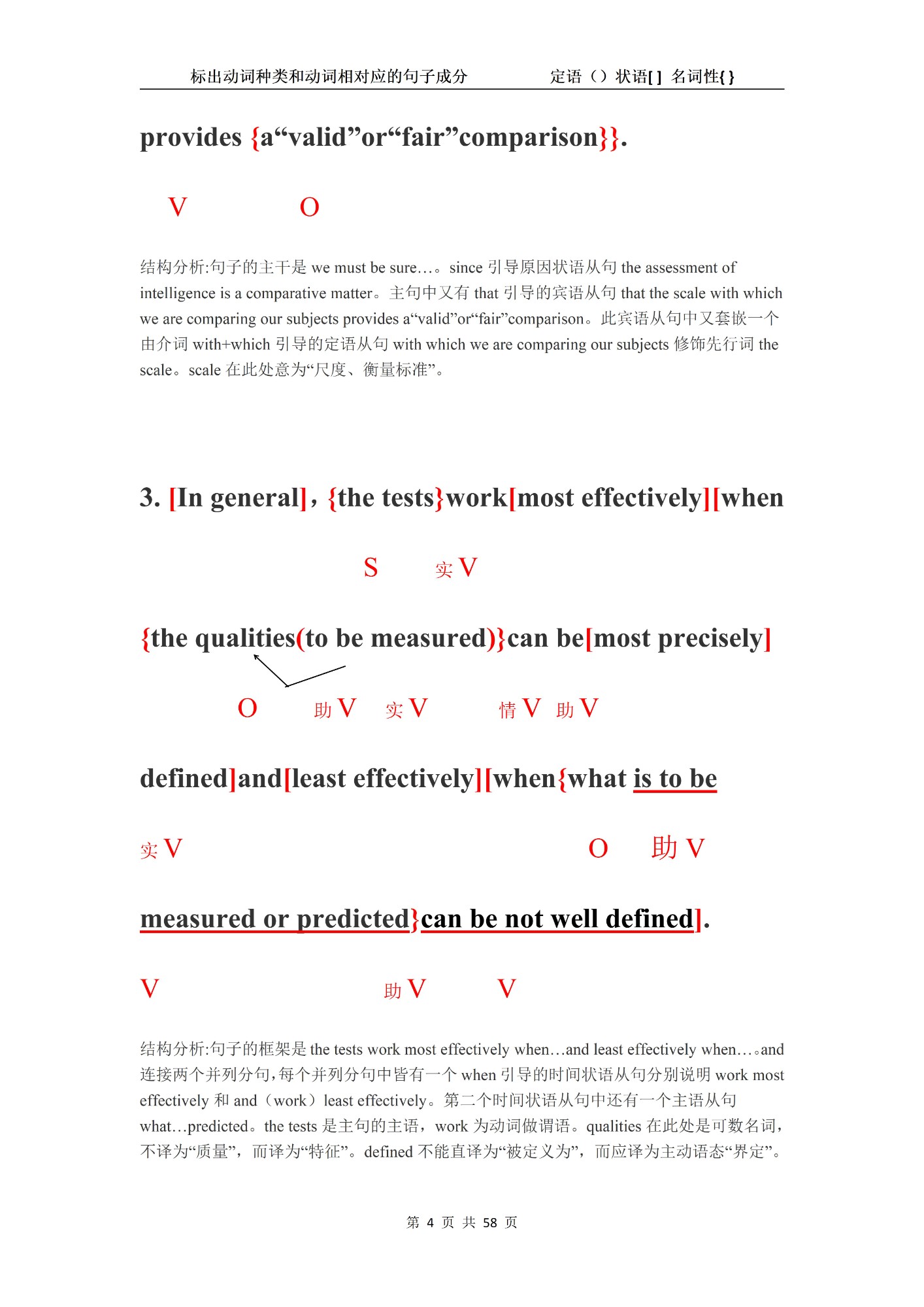 第二、化繁为简,化难为易,一句话讲清语法。学生普遍反映语法难学,上课听不懂。学生只要掌握一句话:找出句中动词,标出动词的种类和与动词相应的句子成分,并不断运用,就可以理解掌握语法。实际教学过程中,学生都能轻轻松松掌握语法,上课听的懂,课后习题能顺利完成,通过这样的方法,分清句子结构,可以透彻理解英语试卷中难句。